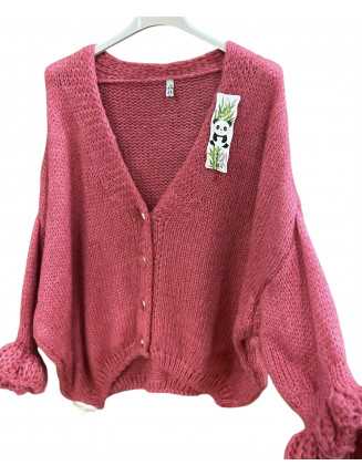 - Material: Ser ut att vara en fluffig, mjuk stickning, eventuellt en blandning som mohair.