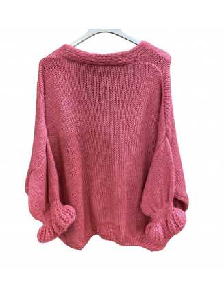 - Material: Ser ut att vara en fluffig, mjuk stickning, eventuellt en blandning som mohair.