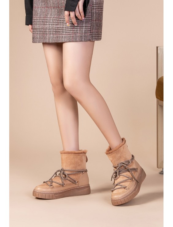 Ankelstövel i två material för kvinnor med snörning, fodrad insida. Slips på direkt. Tjock PVC-sula.Kollektion: Höst/vinter 2022/2023