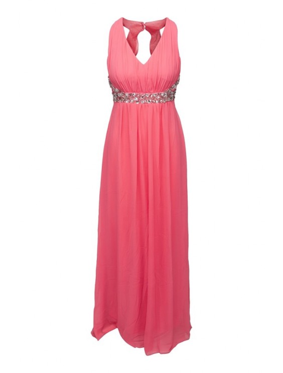En vacker långklänning med pärlor.Öppen i rygg och bryst, försluts med dold dragskjedia, samt inbyggda kuper för att kunna ha klänningen utan BhFärg :ljusrosa Material : 97% polyester , 3% elastisk Skötselråd : ej torktumlinh . HandtvättStorlek : S- L S=34/36m =36/38L = 40
