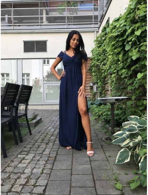 Borderad klänning med snygg form upptill. axelshoulder samt dragkedja. Smock baktill. Stretchig midjaFärg: marin BlåMaterial: 98% Polyester 2% elastaneSkötselråd: ej torktumling, handtvättStorlek: 32= 32-3434= 34-3636= 36-3838= 38-4040= 40-42