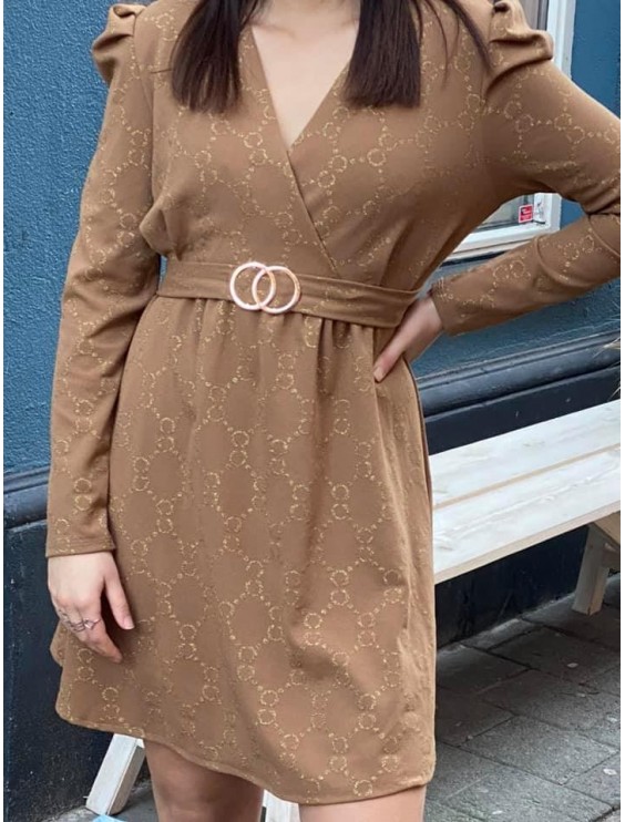Klänning från vivanilla ItemLoose fitV-ringad halsringningMarkerad midja med resårPuffiga korta ärmarFodrad