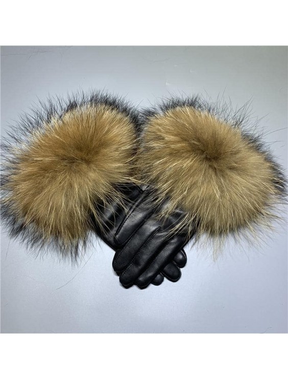 Sabina Skinn Handskar Raccon Päls