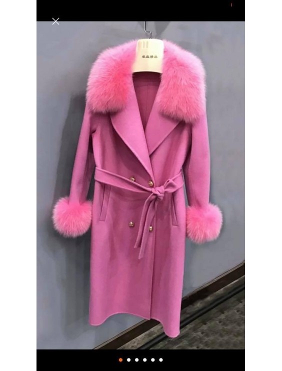 Viktoria Kappa Med Äkta Pälskrage Rosa