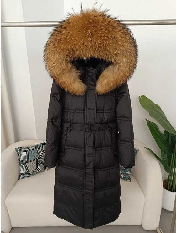 vivanilla vinter dun jackan ger ett elegant och hållbart yttre. Insidan är fodrad med 100% polyester och fylld med 80% RDS-certifierat anddun och 20% fjäder, vilket garanterar optimal värmeisolering. Den naturfärgade äkta pälsen runt huvan ger en lyxig touch, och huvan kan enkelt tas av efter behov. Den tvåvägsdragkedjan i guld framhäver kappans moderna design, och matchande guldfärgade detaljer och knappar förstärker det exklusiva utseendet. vivanilla har en praktisk längd på 88 cm i ryggen, vilket ger både stil och skydd mot väder och vind.