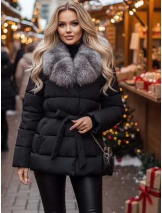 Vinterjacka med päls. Bälte för mer figursydd look. Huva.