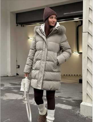 Vinterjacka med päls. Bälte för mer figursydd look. Huva.