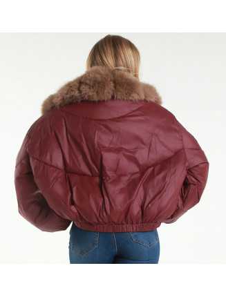 Kort jacka med överdimensionerad volym, med lätt quiltning och ballongärmar som rynkas nertill. Den långa sjalkragen i mjuk fuskpäls omsluter axlar och dekolletage och skapar en elegant och dramatisk effekt, perfekt för moderiktiga vinterlooker.