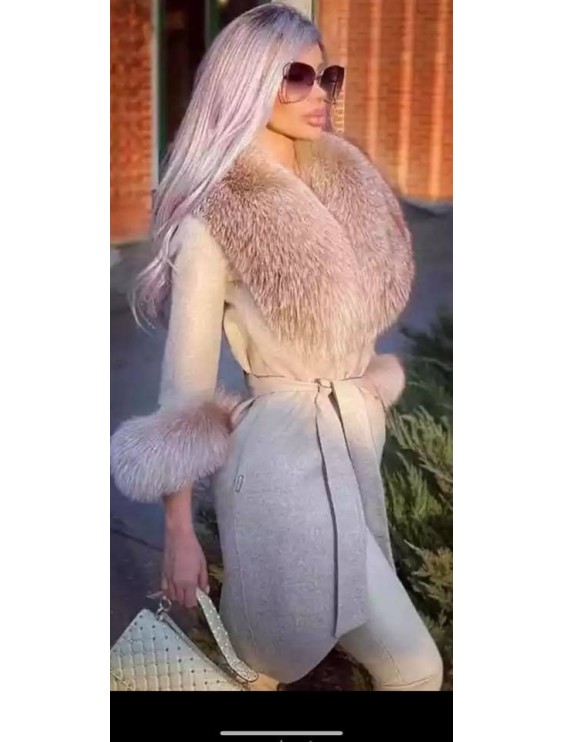 Leverans dag 10 dagar...Äkta ullrock med rävpälsdekoration. Stora guldknappar som stänger pälsen och en linning för en smalare passform. Alla pälsdetaljer kan tas bort.färg:beige .grå.brun.storlek:xs till xltvättråd:kemtvätt