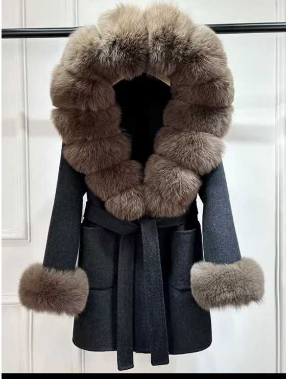 Äkta ullrock med rävpälsdekoration.en linning för en smalare passform.