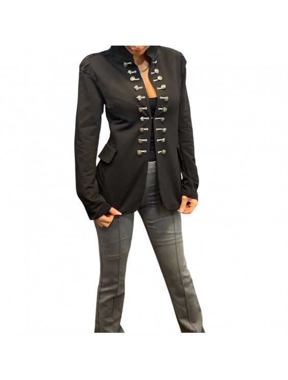 Enfärgad trikåkavaj från scorpion är lavendel.Modellen är rak med insvängd midja. Den har dekorativa knappar och ficklock framtill samt den har en ståkrage.Midjemått ca 84cm och längd ca 62cm i stl M. Normal i storleken.95% bomull 5% elastane30 grader maskintvätt.Färg :svart &