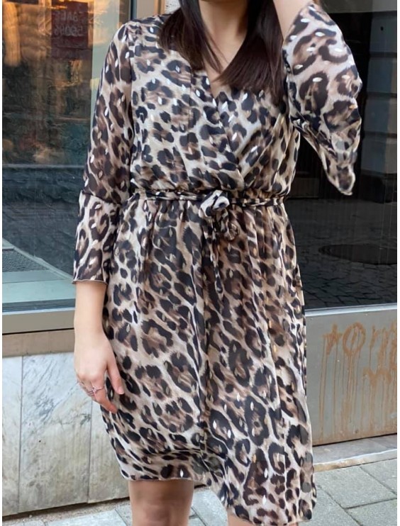 Underbar  leopard  mönstrade klänning ! Färg: brun.svart  Material: Klänning: 100% Polyester, Underkjol: 100% Polyester Tvättråd: 40 grader Storlek: One size . motsavara xs-L