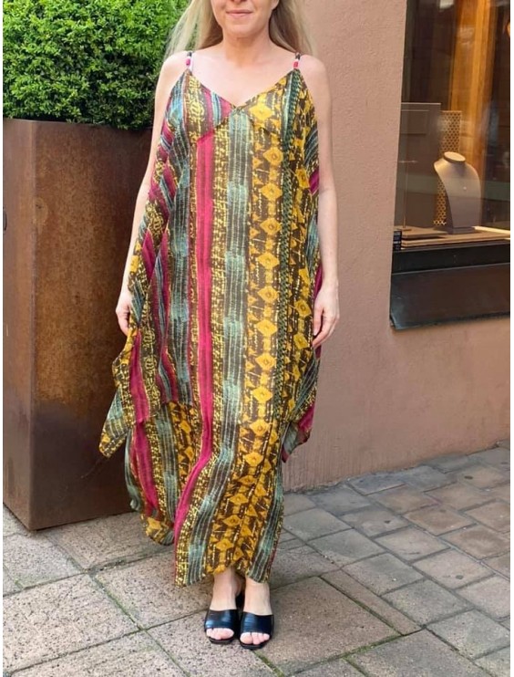 Fin långklänning i fint blad- och färgad mönster.Färg: röd.grön Storlek: Onesize, Tvättråd: 30 GraderMaterial: 95% Polyester, 5% Spandex