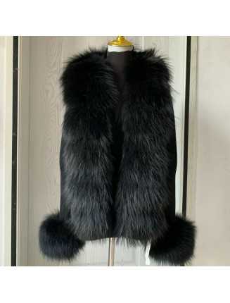 Pälskappa Lyxig Bandagepälskofta Avtagbar Patchwork Stickad Tröja Krage Jacka Ny Höst-vinter Dampälskappa 12_567890
