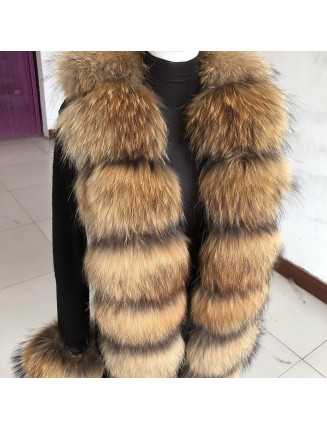 Pälskappa Lyxig Bandagepälskofta Avtagbar Patchwork Stickad Tröja Krage Jacka Ny Höst-vinter Dampälskappa 12_567890
