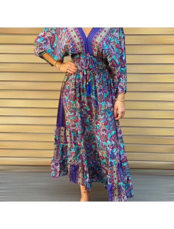 Alma är en vackert mönstrad volangklänning från Chica London. Klänningen har omlott över bysten och dragsko i midjan och knytning baktill i nacken.Material: 100% viskosTvättråd: 30°C fintvätt
