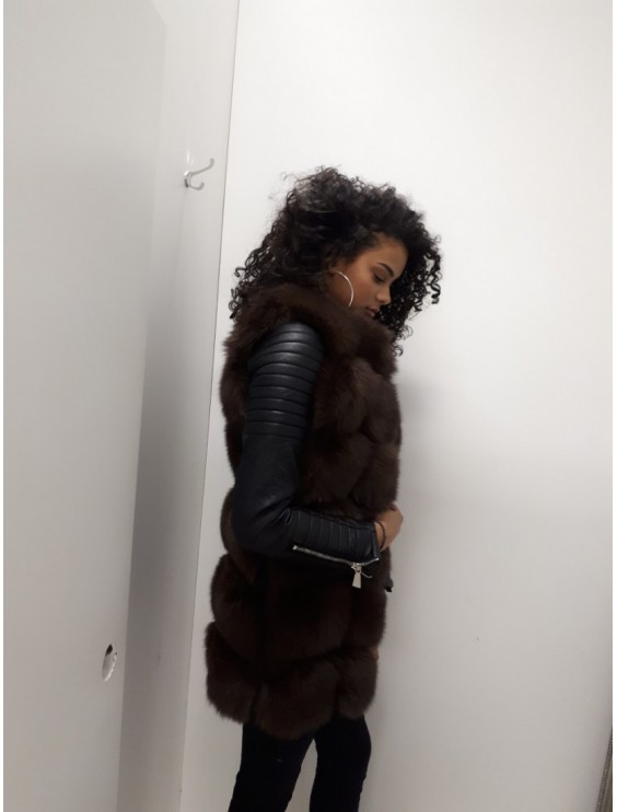 Exklusiv pälsväst med fickor.Foder i satinliknande material. Knäpps framtill med hyskor och hakar.Tillverkad av: 100% Räv. Innerfoder: 100% Polyester. Finns i färgerna: svart-ljusgrå-mörkgrå-brunLängd: 90 cm från nacken. Storleksråd: Normal.Tvättråd: Lämnas till pälsspecialist.