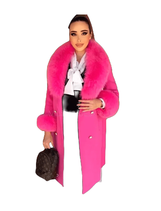 Trendigt ull kappa med pälsdetaljer