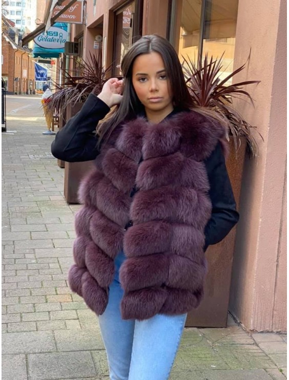 Exklusiv pälsväst med fickor. Foder i satinliknande material. Knäpps framtill med hyskor och hakar. Tillverkad av: 100% Räv. Innerfoder: 100% Polyester. Finns i färgerna: svart-ljusgrå-mörkgrå-brun vit beige Längd: 75cm från nacken. Storleksråd: Normal. Tvättråd: Lämnas till pälsspecialist
