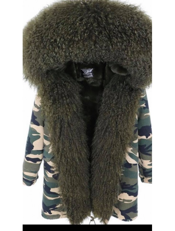 Vivanilla Camo Parka Jacka Med Pälsdetaljer