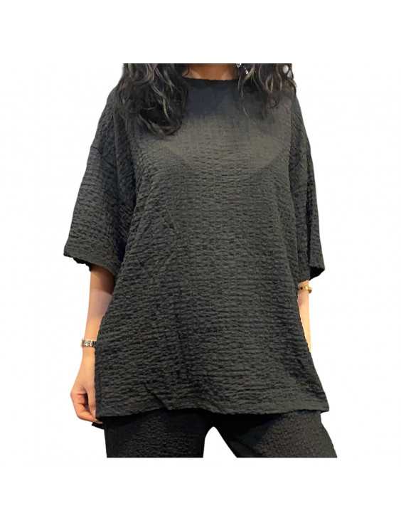 Tvådelade set för kvinnor Sommar T-shirt med rund hals och halvärm Byxor med vida ben Casual Lösa toppar Mat svart