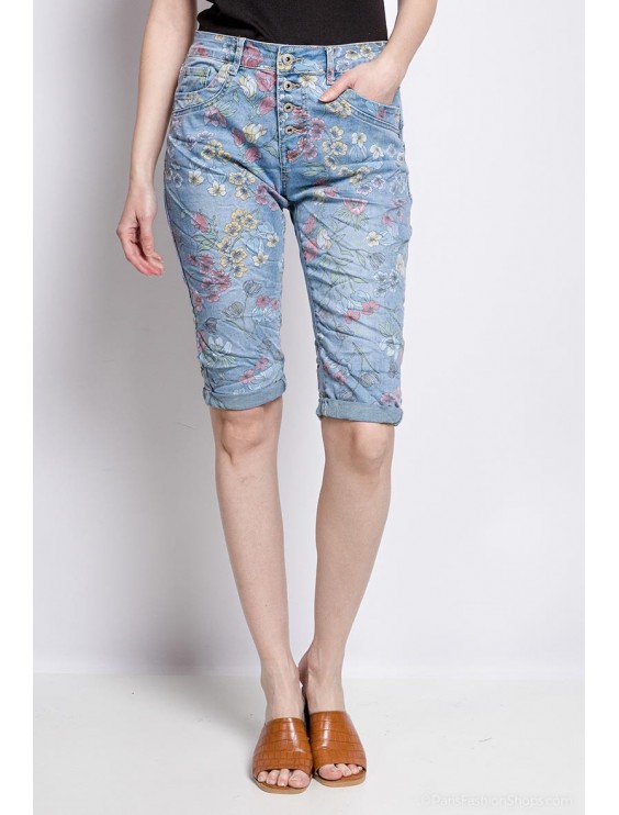 Cropped pants with printed flowers. The model measures 177 cmCollection : Spring/Summer 2021Composition : 86% Cotton, 12% Polyester, 2% Elastane