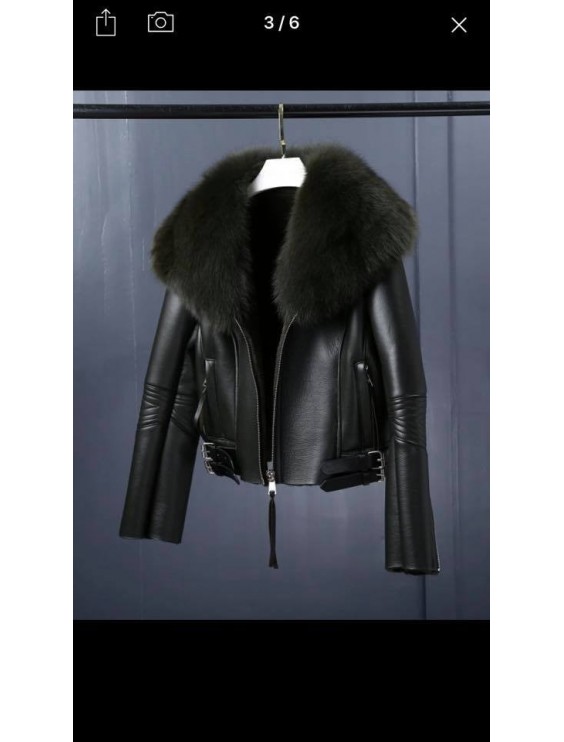 skinnjacka med stor pälskrage i äkta päls