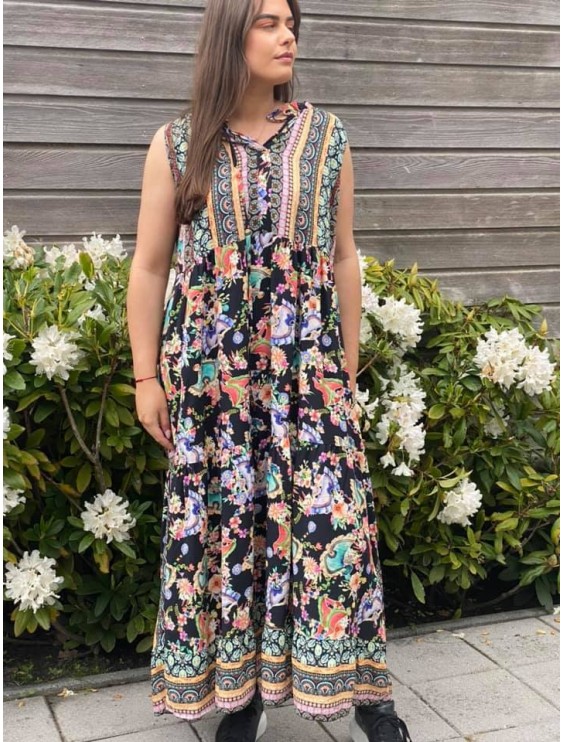 Supersöt mönstrad klänning med råa kanterFärg: TaupeStorlek: Onesize, passar XS - XXLTvättråd: HandtvättMaterial:  80% Bomull, 20% Linne