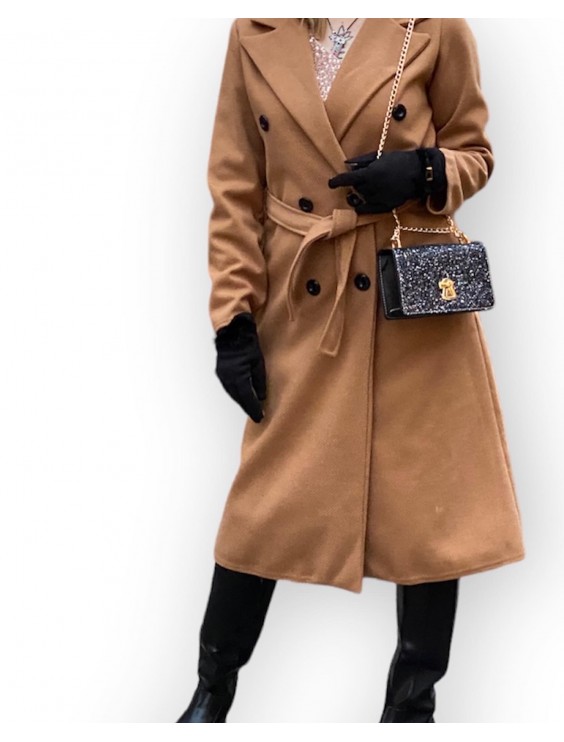 Trendig kappa. - Onesized passform 34-40- Tre knappar framtill- En dold knapp- Två framfickor- Avtagbart knytskärp i midjan- Två slitsar på sidan- Längd från axel fram: 120 cm i storlek 36Material: Yttertyg: 95% polyester, 5% Elastan Tvättråd: Kemtvätt.