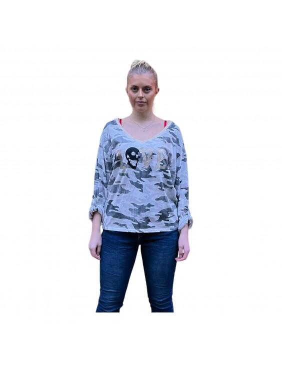 ALANA LÅNGÄRM CAMO-TRÖJA med V-HALS